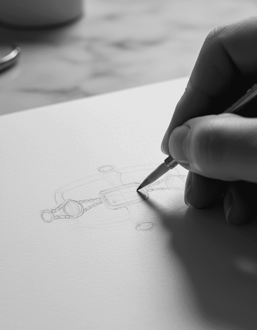 Design sketches prepared for comparison, gem selection, quotation, and timeline confirmation.